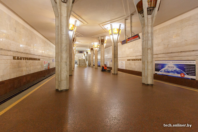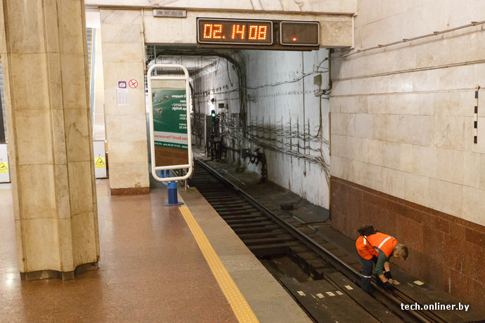 Последний поезд отправляется со станции «Уручье» примерно в 1:05, а минут через 25 заканчивает маршрут в «Малиновке». К полвторого ночи посторонних людей во всем метрополитене не остается. За пассажирами с лязгом закрываются двери, теперь на платформах и в тоннелях можно увидеть только сотрудников метро. Каждый из тех, кто спускается в перегоны, дважды отмечается в комнате дежурного по станции — при входе и, как ни странно на первый взгляд, выходе. Если человек не «выписался», считается, что он остался в тоннеле. Из-за такого дела могут и первый поезд задержать.
