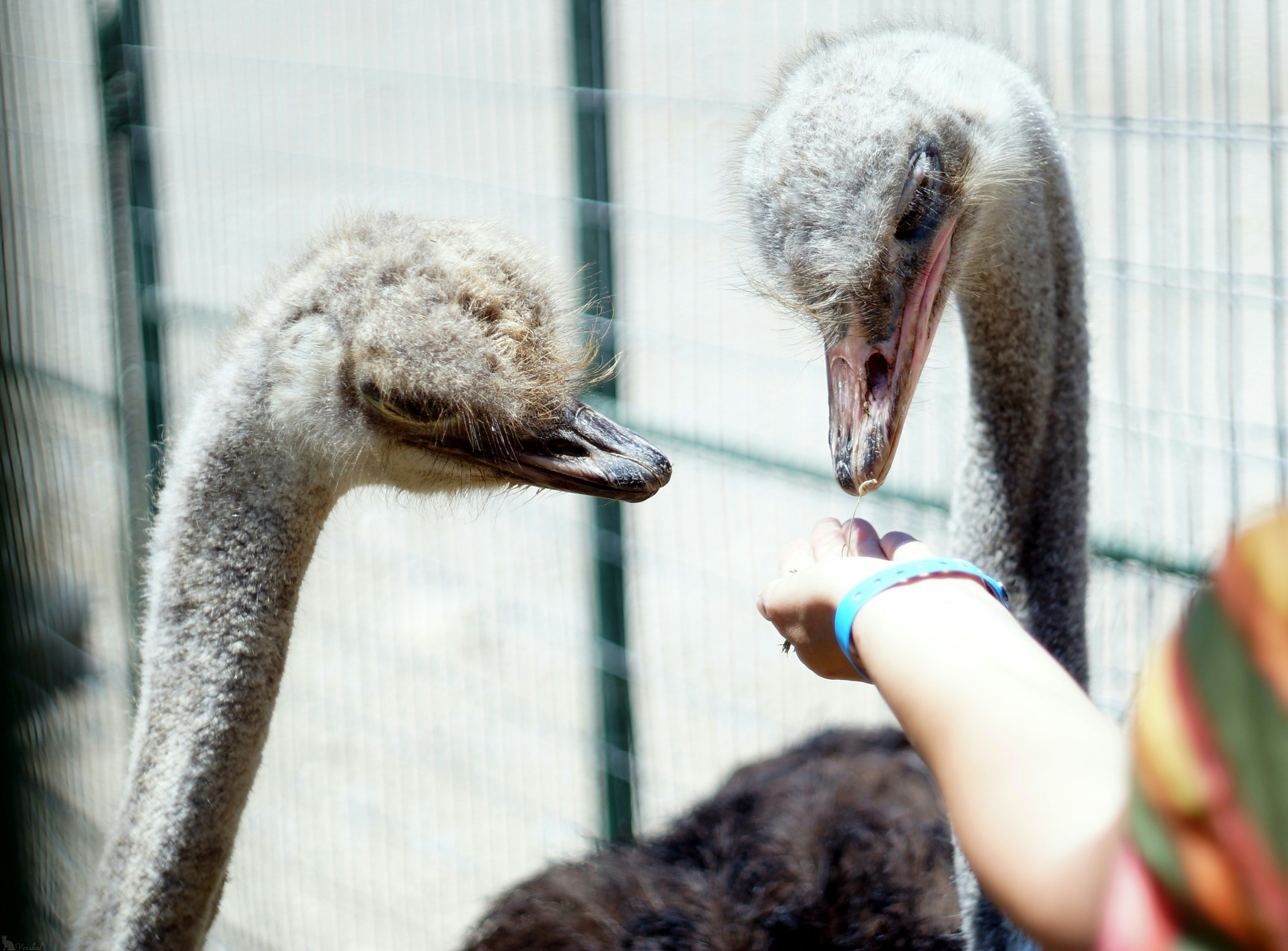 Кстати говоря, пока страусы едят, свободной рукой их можно погладить