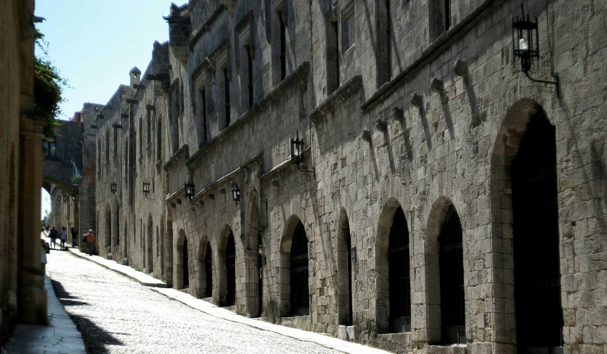В столице наибольший интерес представляют собой порт и Старый город. Что вы тут увидите? Много людей, чуть меньше котов и кошек. Центральные улочки, за исключением улицы Рыцарей, напичканы торговыми точками и пунктами приема пищи. Очень рекомендую не страшиться отклонения от основных маршрутов. Узкие жилые переулки Родоса слегка напоминают каменные лабиринты из советского фильма «Бриллиантовая рука». Но берегитесь, любая дверь может неожиданно распахнуться... Кто не понял, пересматриваем упомянутый выше фильм Гайдая.