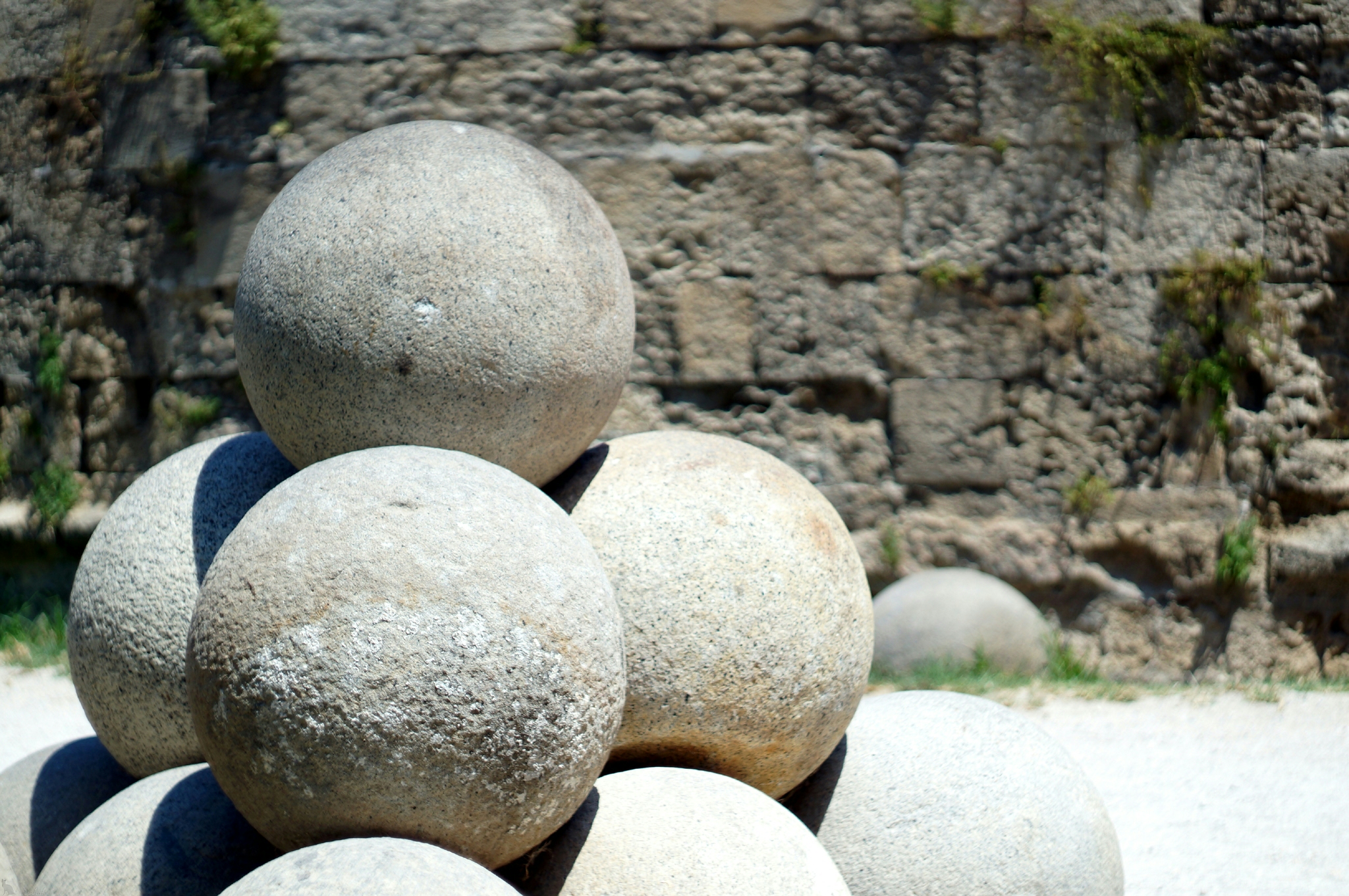 Каменные ядра на одном из входов в ров, окружающий Старый город в Родосе