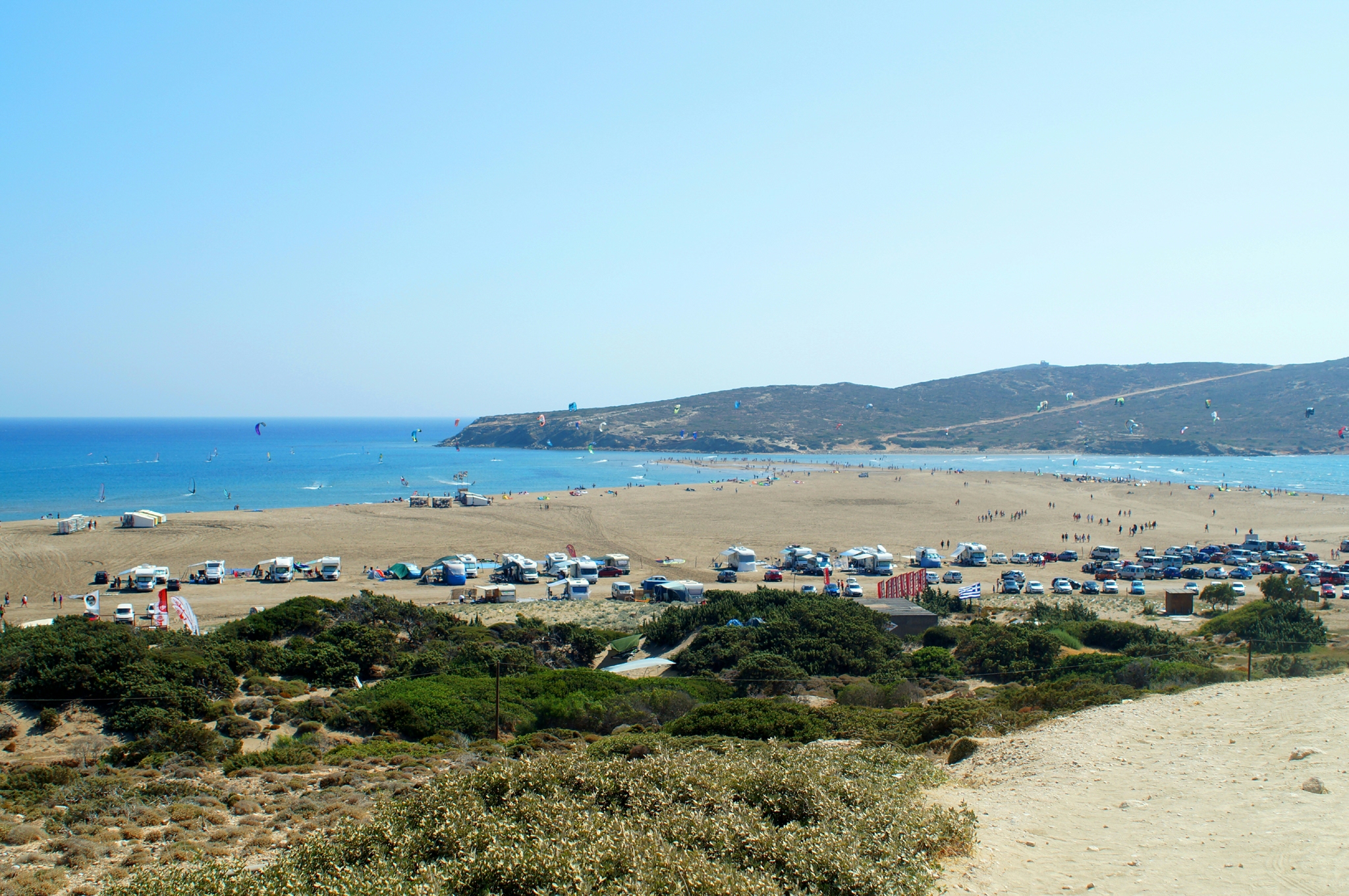 По пути на Прасониси можно заехать на старую фабрику по производству шелкаНадо сказать, что «Поцелуй двух морей» — одно из самых посещаемых мест на острове. Феноменальную ценность данной достопримечательности можно оспорить, но съездить туда нужно всенепременно. На бумаге Прасониси — это небольшой остров, который соединяется широкой песчаной косой с самим Родосом. По одну сторону косы на песчаном дне возлежат воды Эгейского моря, а по другую — Средиземного. Считается, что именно тут можно на собственной шкуре ощутить разницу температур этих двух морей. Не знаю, как остальным туристам, а мне пришлось достаточно долго полоскать собственную шкуру то с одной стороны косы, то с другой, чтобы почувствовать разницу. Впрочем, на значимость впечатлений это не влияет. Если вы планируете провести на косе какое-то время, захватите с собой что-нибудь непромокаемое — куски пленки, большие пакеты или резиновые коврики из автомобиля. Песок на косе очень мокрый и соленый. Если вы приляжете позагорать на полотенце, оно моментально промокнет, а после высыхания вы сможете хранить его в углу, прислонив к стене.