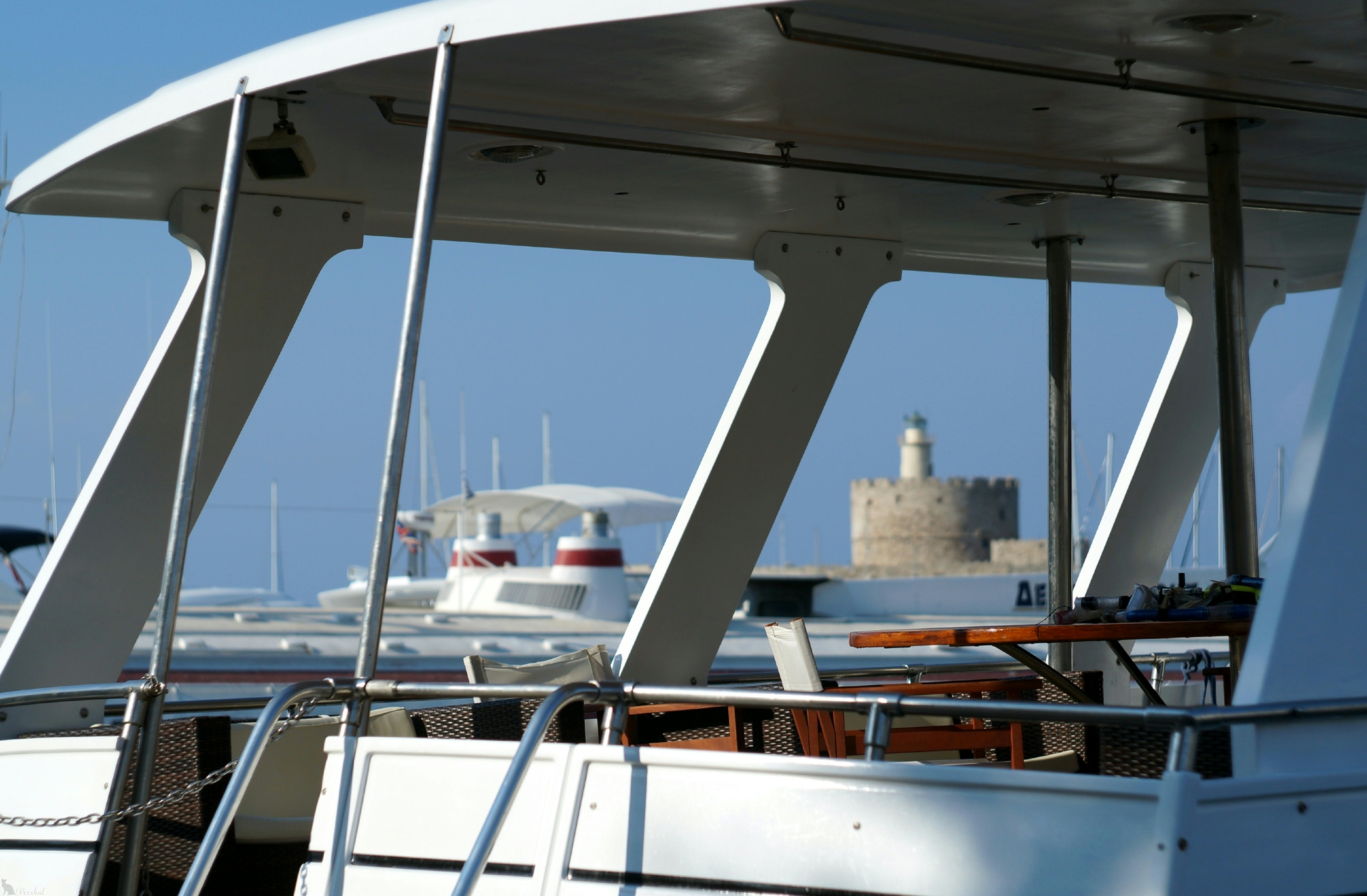 Яхта и маякПо-хорошему, город Родос стоит того, чтобы посетить его дважды: в дневное и вечернее время. Не надо забывать, что здесь, на севере острова (так же, как и на юге), соединяются два моря — Эгейское и Средиземное. Тут обязательно стоит искупаться и насладиться закатом. Солнце буквально за несколько минут спрячется за видимой на горизонте частью побережья Турции.