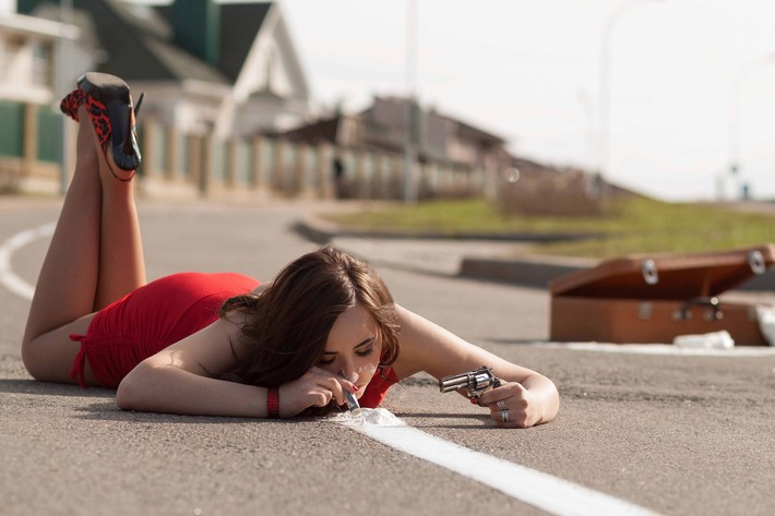 Моя техника — это полная проработка всех деталей, начиная от поиска реквизита, заканчивая подбором поры года для съемки. Конечный результат — один-два кадра, достойных кадра, которые не сошли с конвейера, а были продуманы и воплощены в жизнь. В моем фотосюжете вы можете увидеть скрипачку на крыше (нам изрядно пришлось поморозить носы в —15°C), девушку в ванне с молоком и лепестками роз (нужно было видеть лицо кассира, когда мы закупили столько молока:)), ковбойшу (тогда мы узнали, как кусаются лошади:)) и другие фото. Такой подход к съемке, конечно, не такой «профессиональный», как так называемое походить по городу и половить моменты, ляпая на кнопку своего фотоаппарата за $2000, но, поверьте, результат себя оправдывает. А приключения, возникающие при съемках, не заставят заскучать:) Кстати, снимки сделаны на Canon 500D с 18—55mm kit и EF 85mm 1:8.