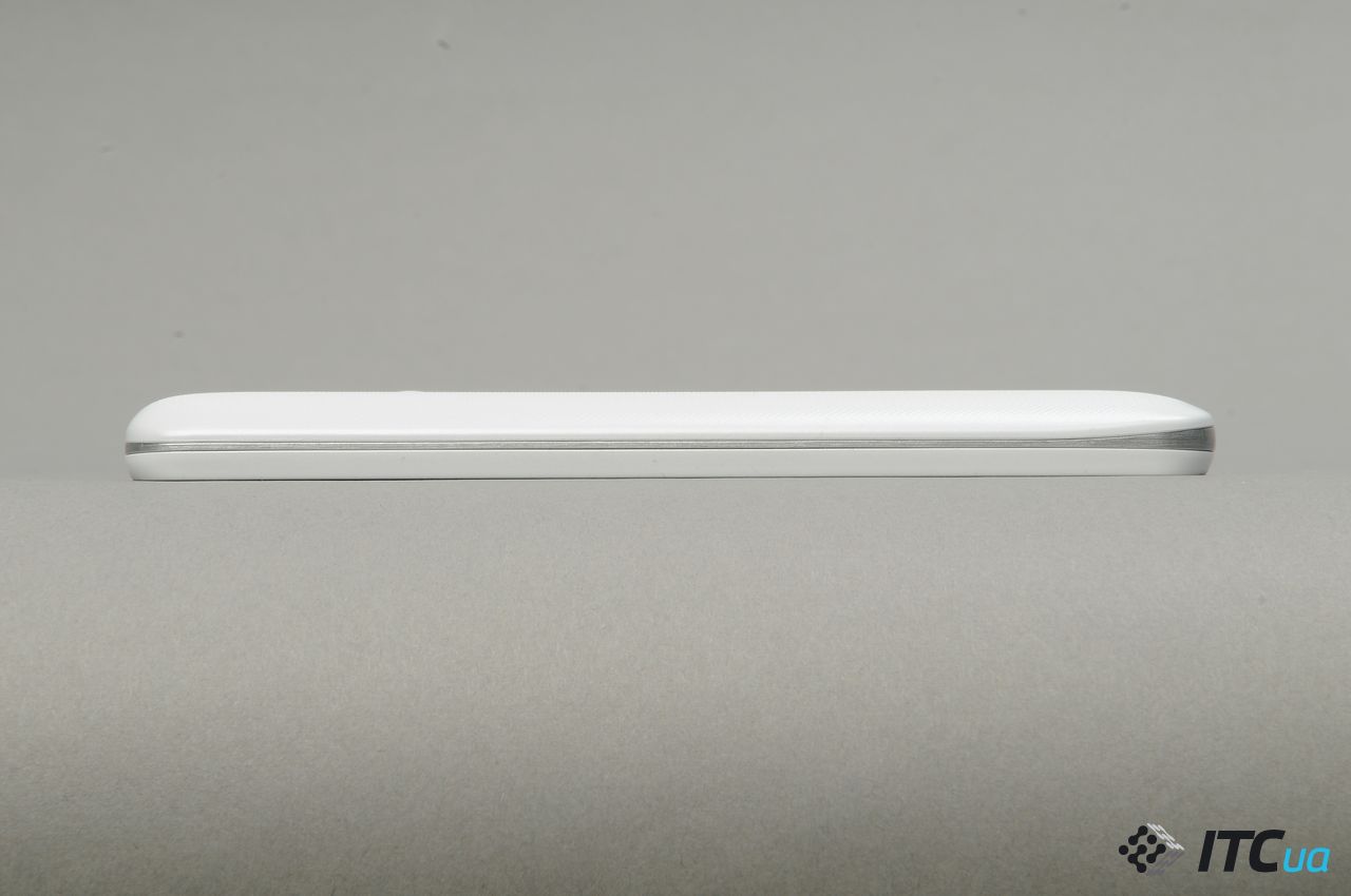 Параметр / Устройство LG G2 mini LG L90 (D405) Motorola Moto G Acer Liquid E3 Lenovo S650 HUAWEI P6 Экран, диагональ 4,7″ 4,7″ 4,7″ 4,7″ 4,7 4,7 Аккумулятор, мА*ч 2440 2560 2070 2000 2000 2000 Высота, мм 129,6 131,6 129,9 136 138 132,7 Ширина, мм 66 66 65,9 68 69,8 65,5 Толщина, мм 9,9 9,7 11,6 9 8,8 6,2 Вес, г 121 126 143 134 126 120 На гранях корпуса клавиши отсутствуют. На верхней можно обнаружить разъем для наушников, отверстие второго микрофона и ИК-передатчик. На нижней грани находится разъем Micro-USB и два отверстия прикрытых сетками. Под левым скрывается разговорный микрофон, под правым – мультимедийный динамик.