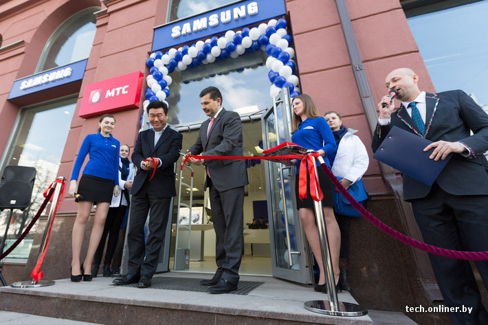 Сегодня в Минске, по адресу Немига, 5, компания Samsung и оператор МТС открыли совместный магазин. Одновременно было объявлено о старте продаж смартфона Galaxy S5. Здесь же можно купить другие телефоны корейского производителя, телевизоры, планшеты и аксессуары. Посетители также могут ознакомиться с услугами голосовой связи, мобильного и фиксированного интернета МТС.