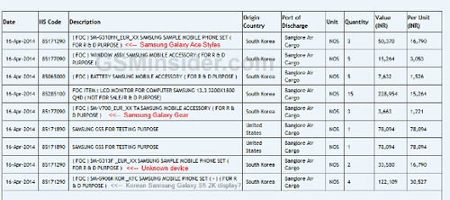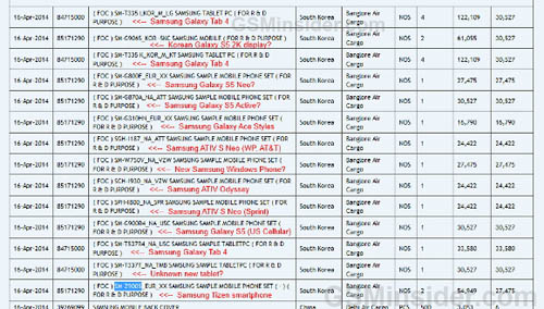 В базе данных Banglore Air Cargo было замечено больше 10 гаджетов Samsung.