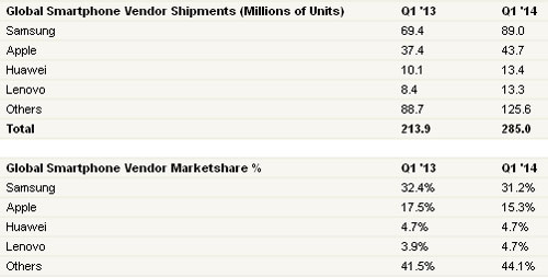 Samsung и Apple сдают позиции под натиском китайских производителейчетверг, 01.05.2014 16:28