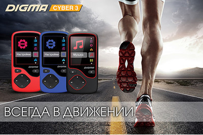 Ассортимент продукции торговой марки Digma пополнился тремя новыми моделями MP3-плееров: Digma Cyber 3, Digma R2 и Digma U3.